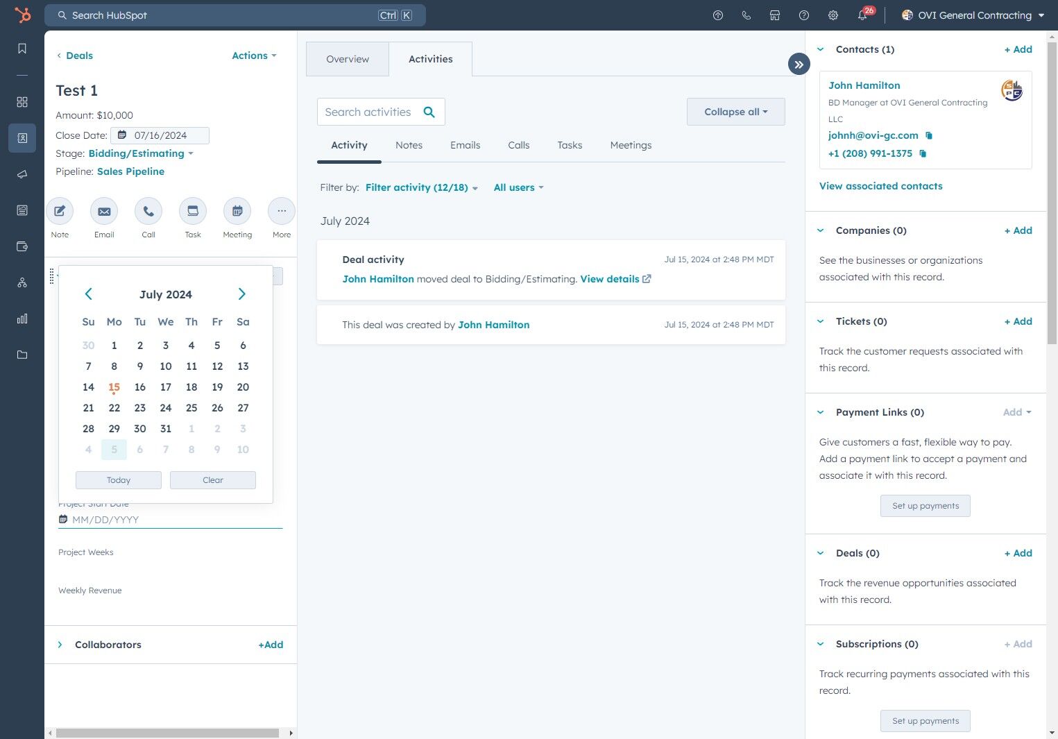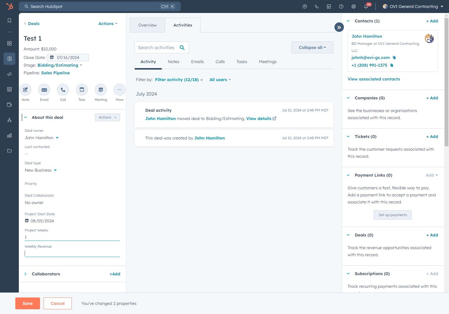 This guide will walk you through the process of setting up crucial project details in HubSpot, including the project start date, duration, and weekly revenue. These steps are essential for accurate revenue forecasting and project tracking.