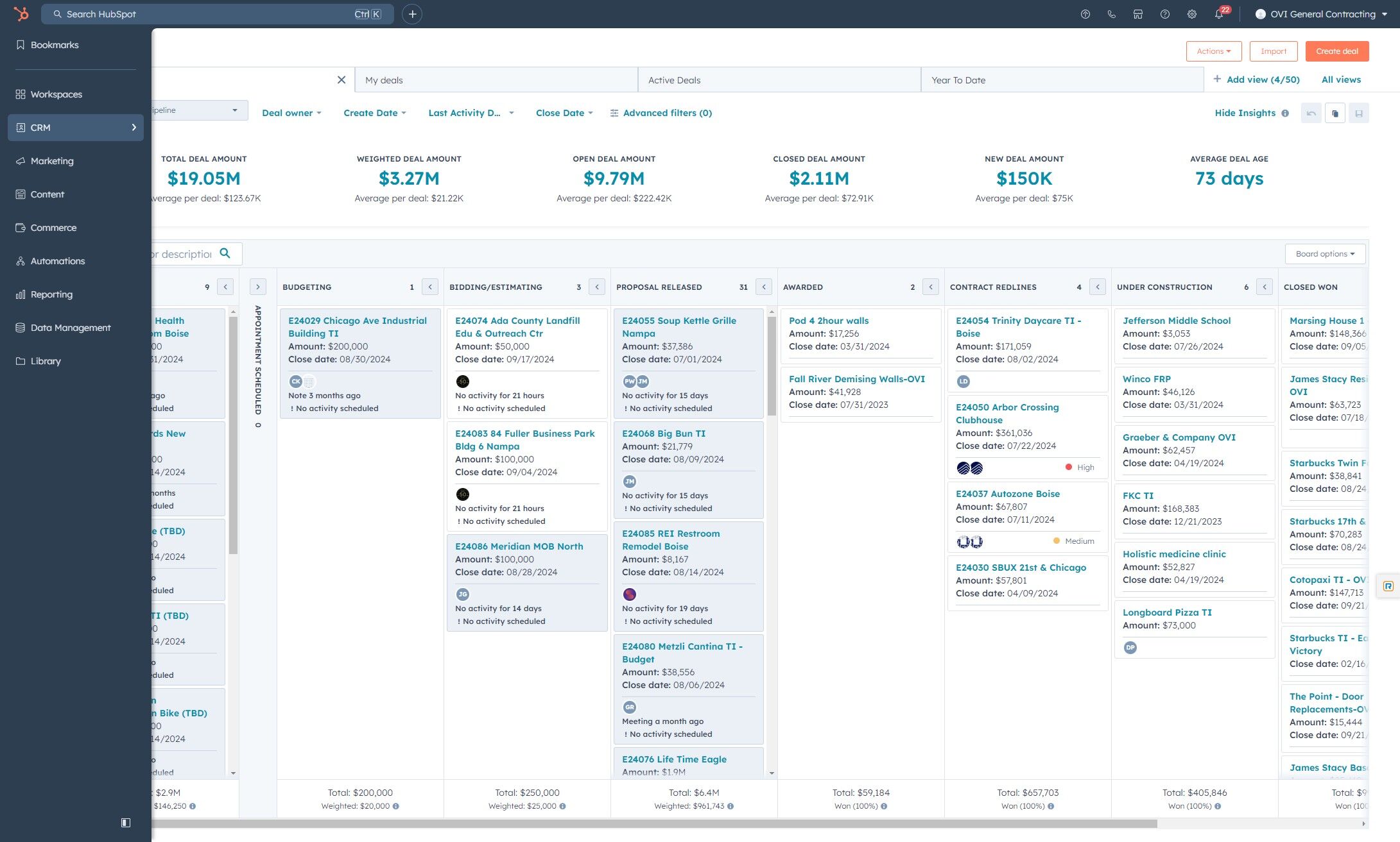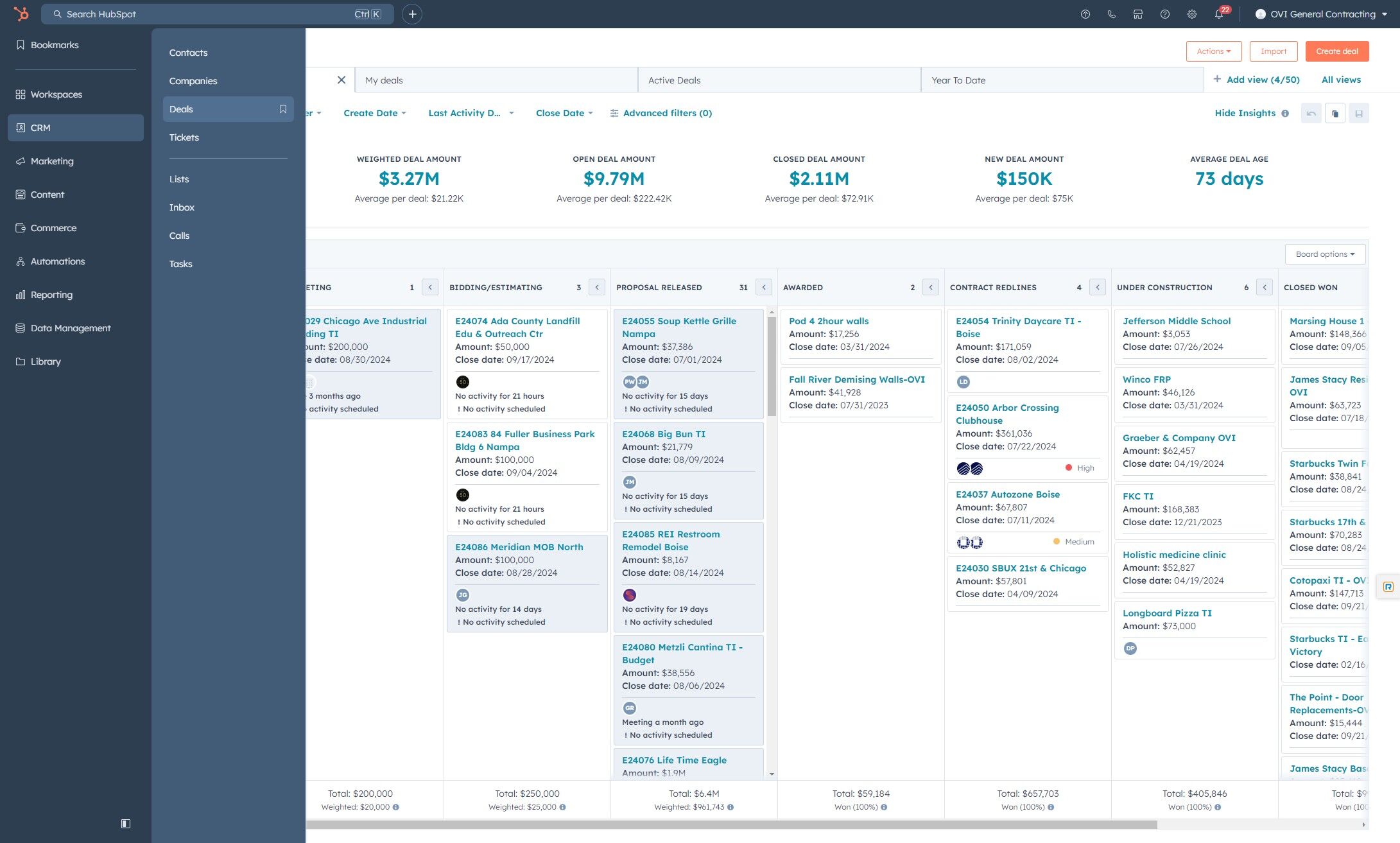 - In HubSpot, click on "CRM" in the main navigation menu.