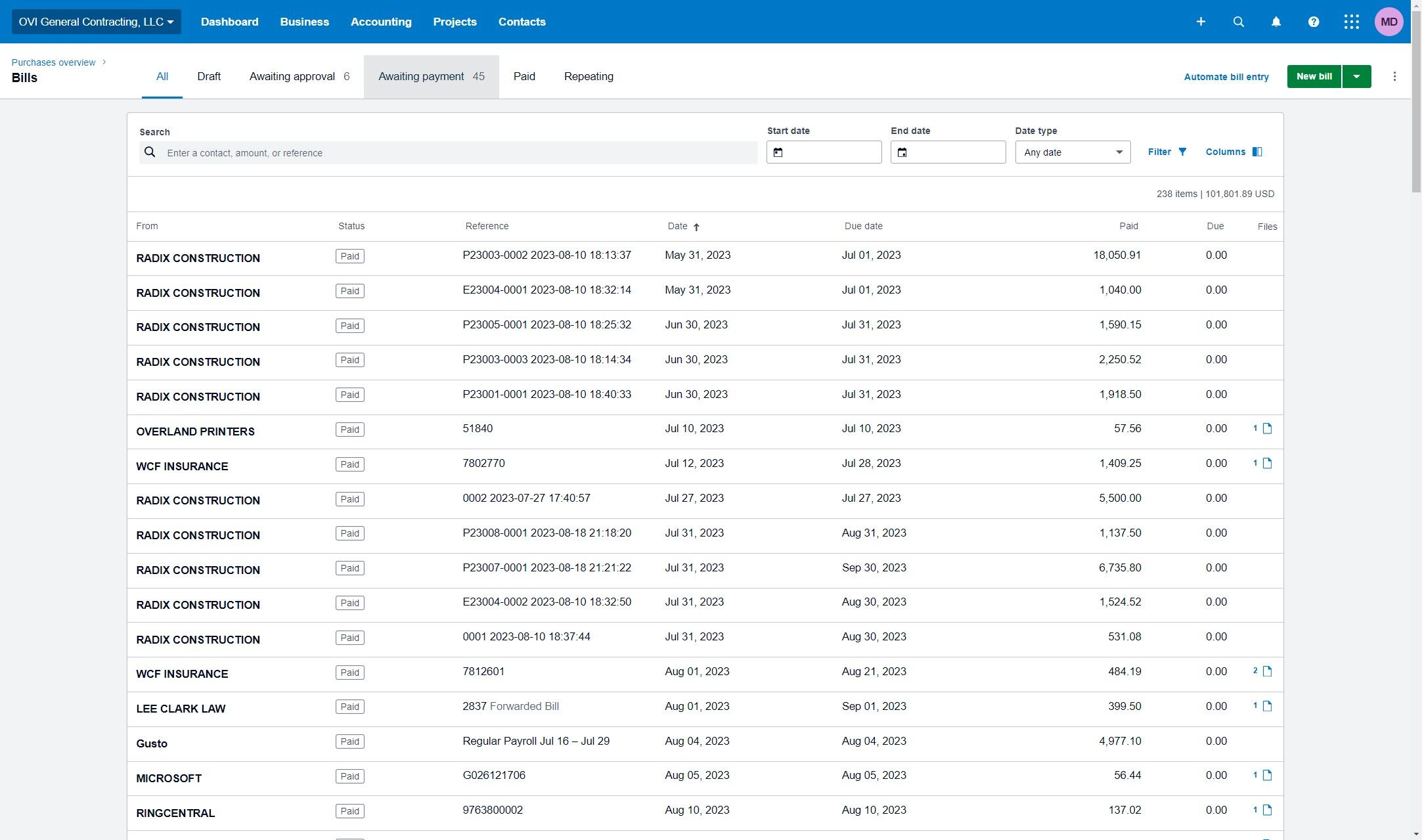 - The bill has been logged and approved in Xero