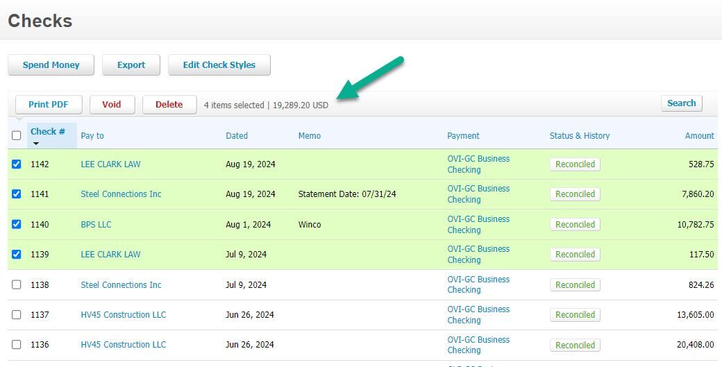 Click the "Print PDF" button to download a PDF of all selected checks.