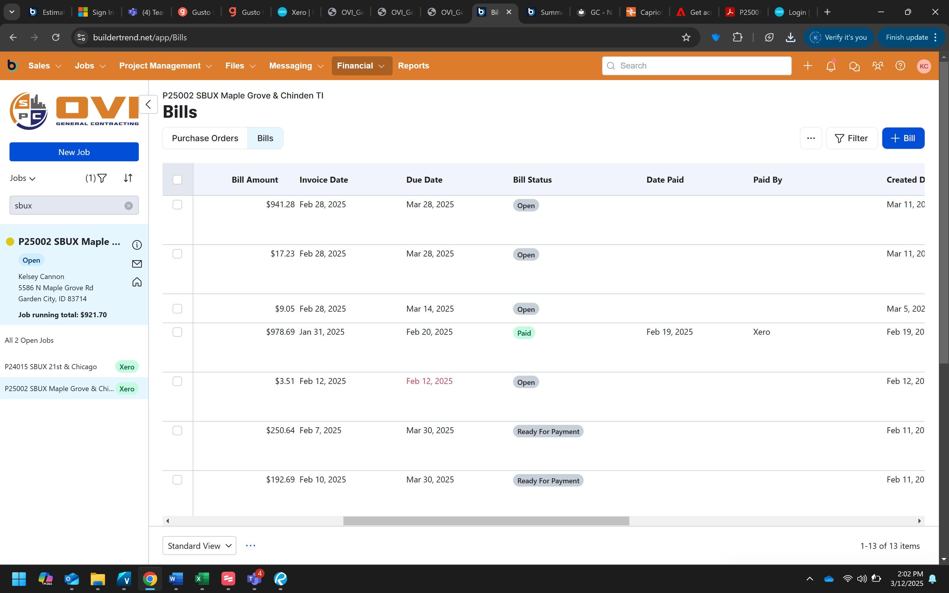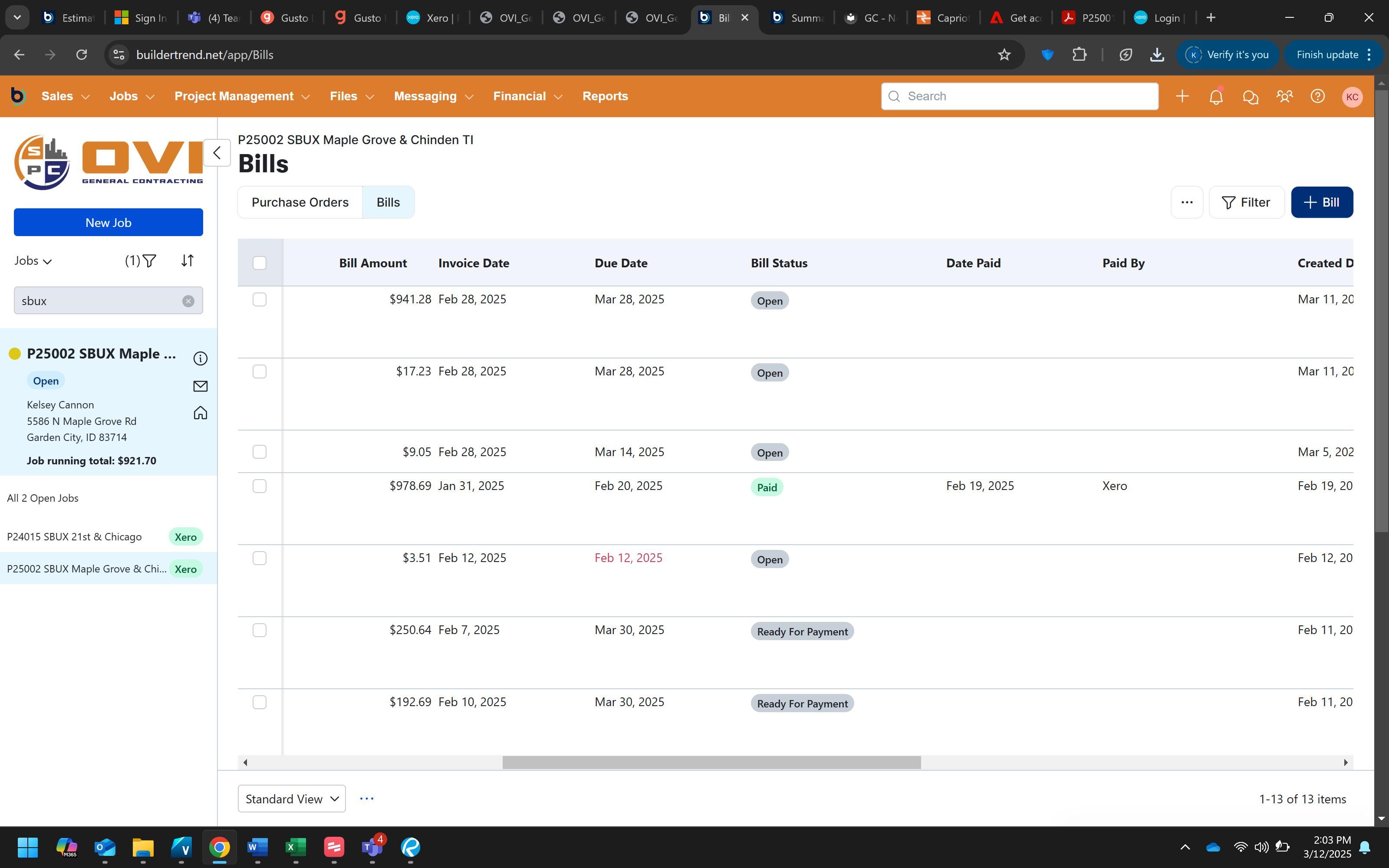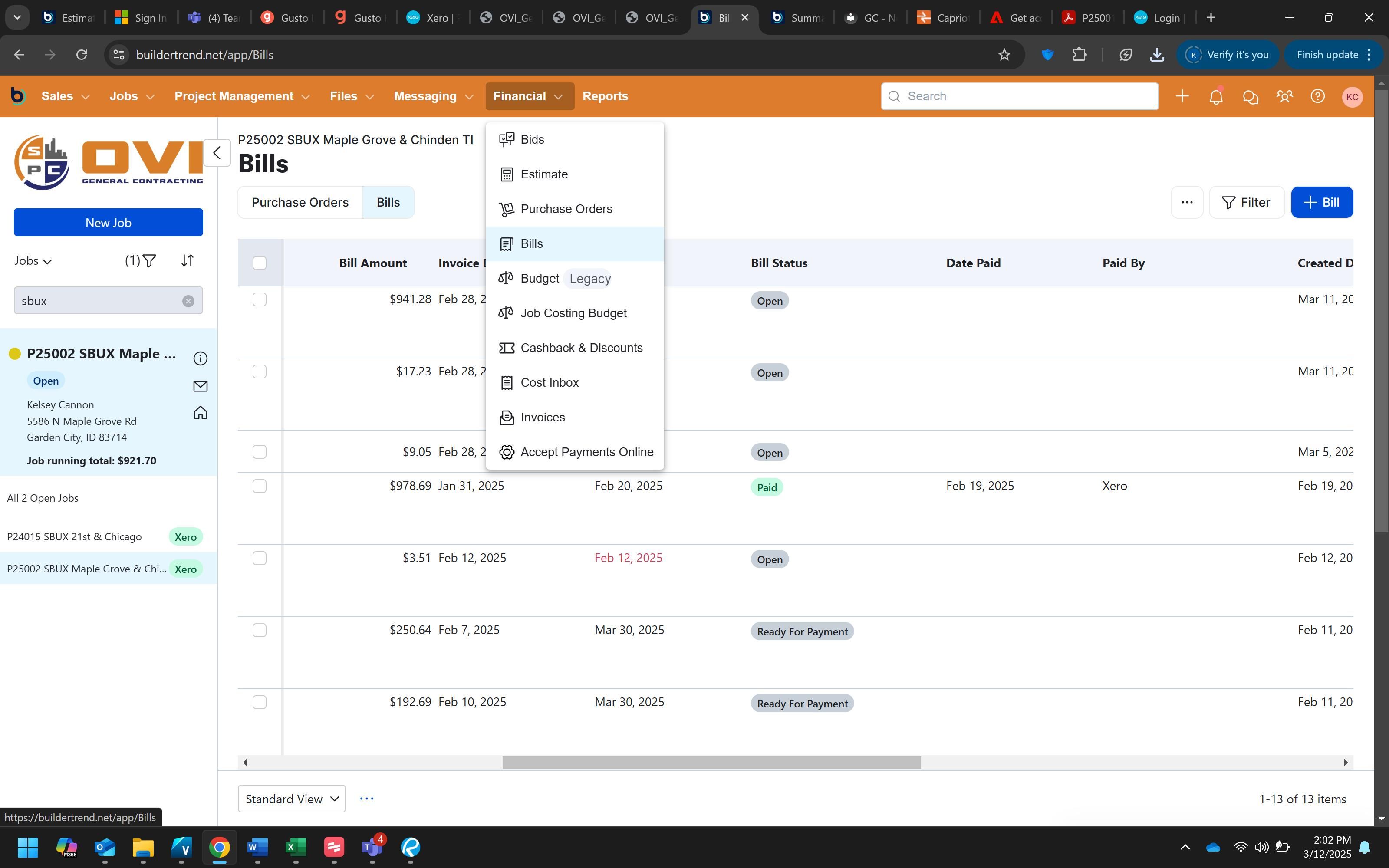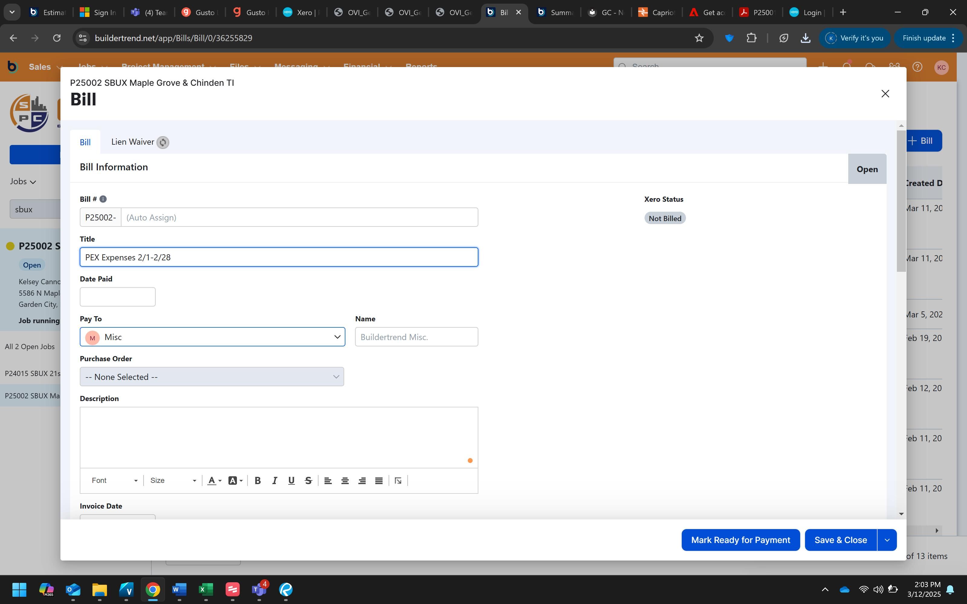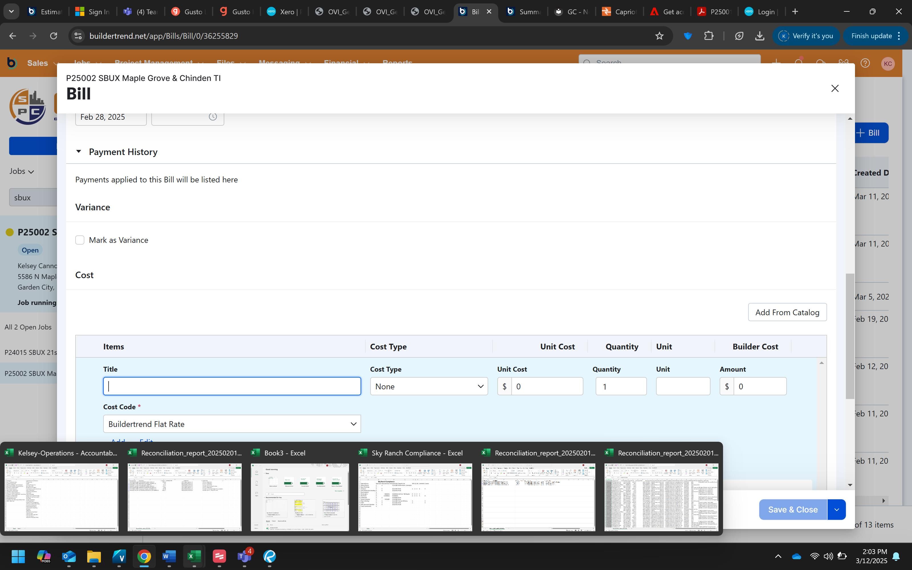This procedure guides you through the process of adding PEX card expenses as a bill in BuilderTrend. This is part of the monthly reconciliation process to ensure all PEX expenses are properly tracked and associated with the correct project and cost codes.