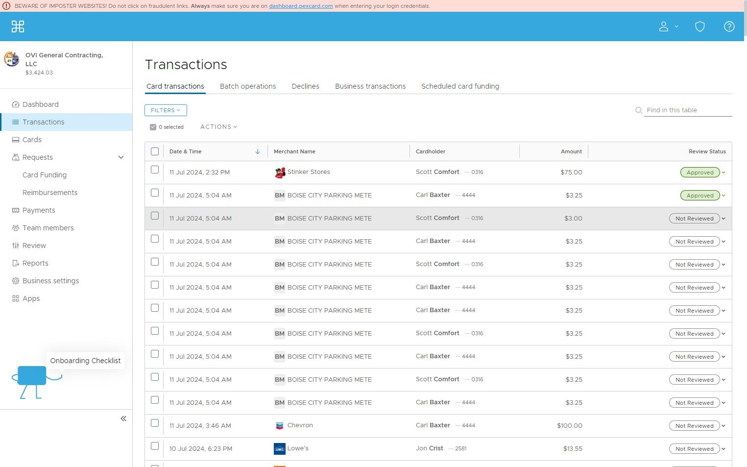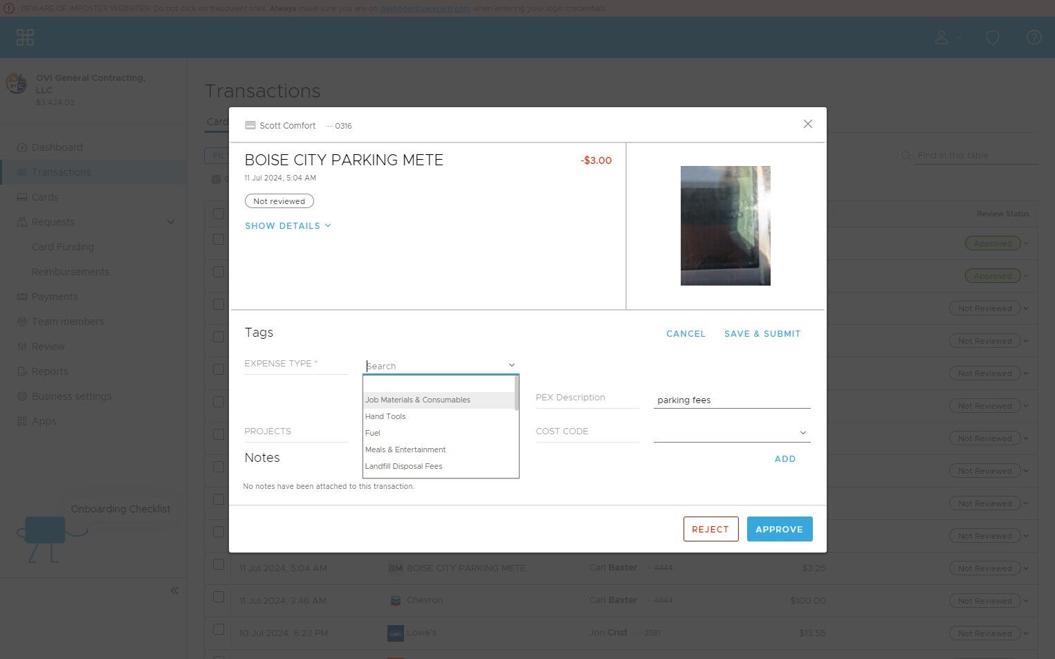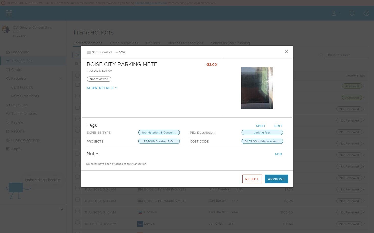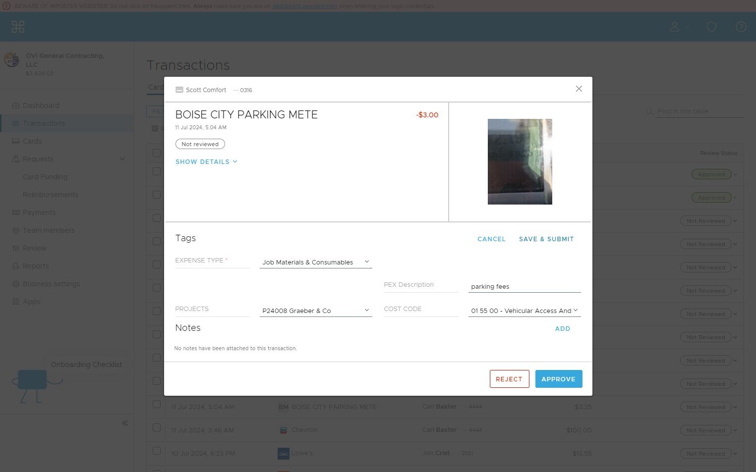 This procedure explains how to properly review, categorize, and approve transactions in the PEX dashboard. Ensuring transactions are properly categorized is essential for accurate financial reporting and job costing.
