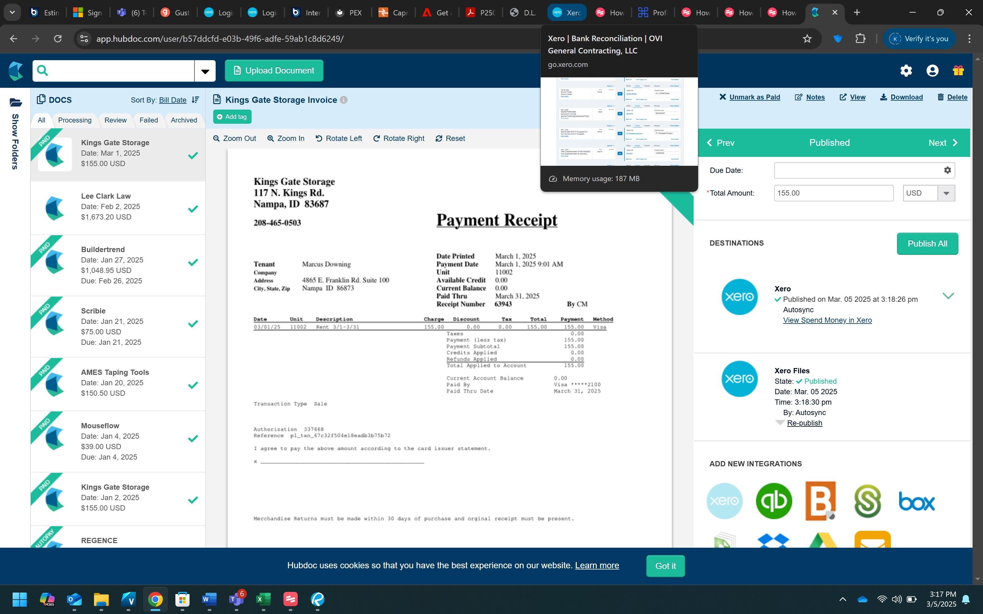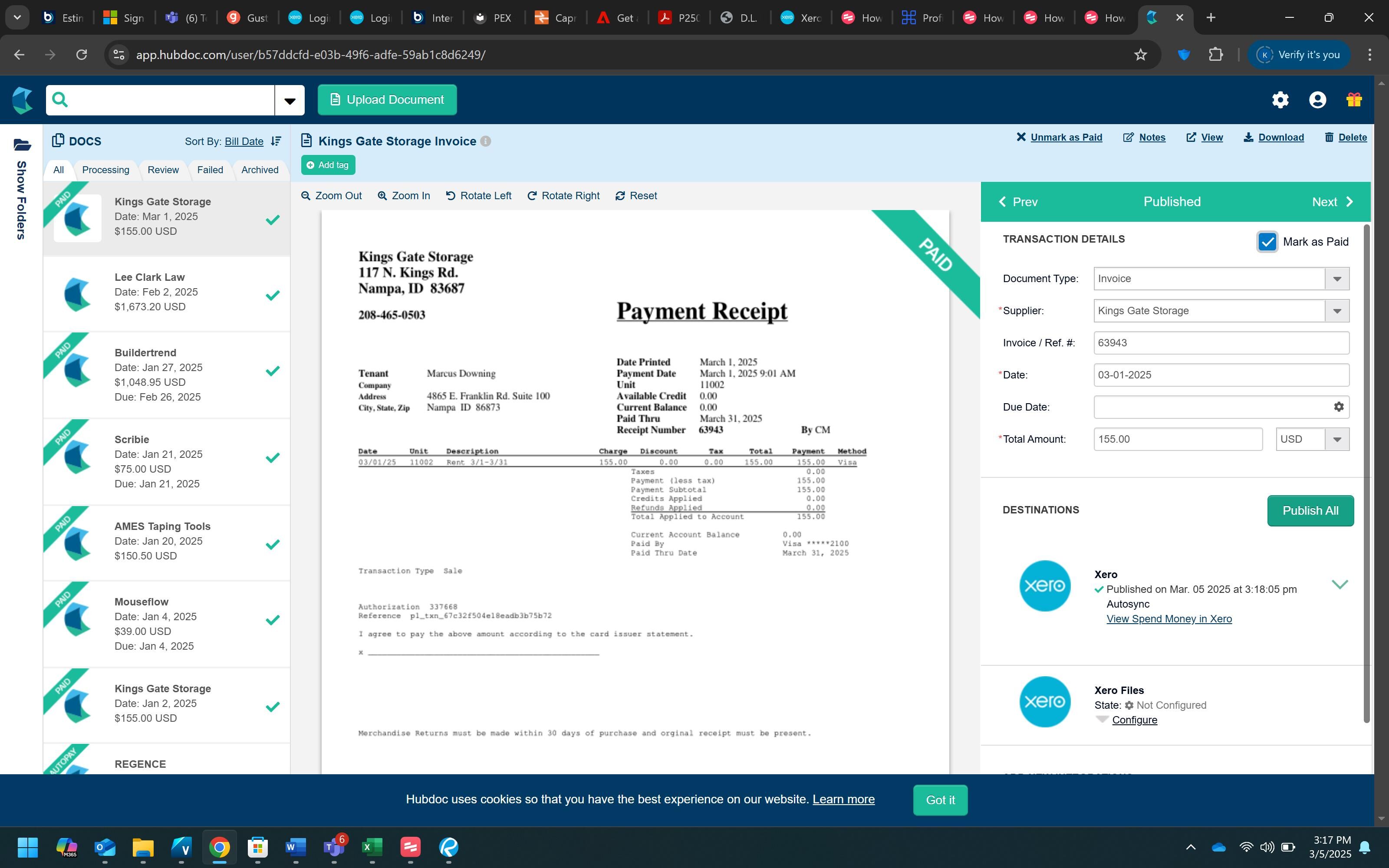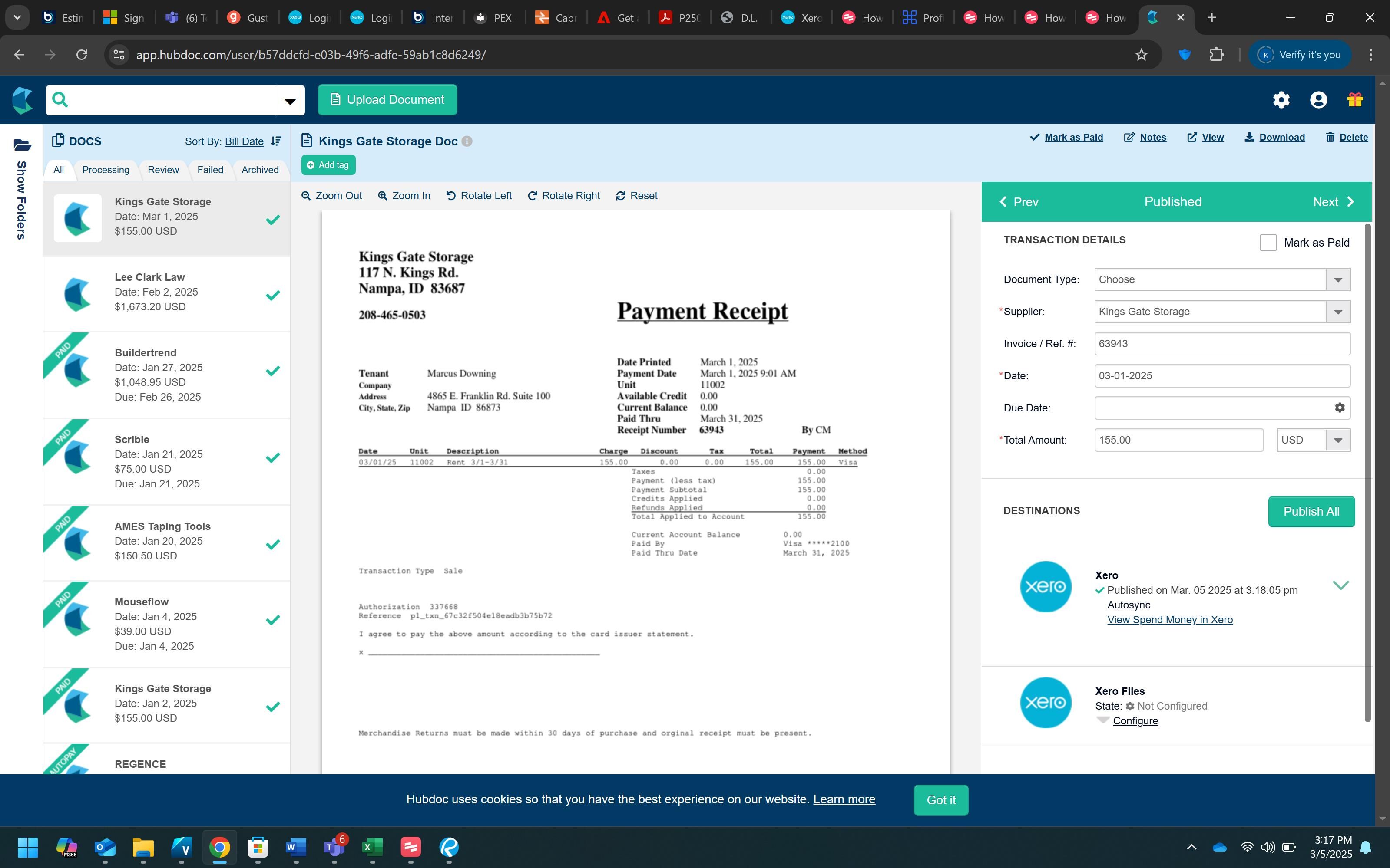 Once reconciled, the transaction is marked as complete, and the document is attached to the transaction record in Xero for future reference.