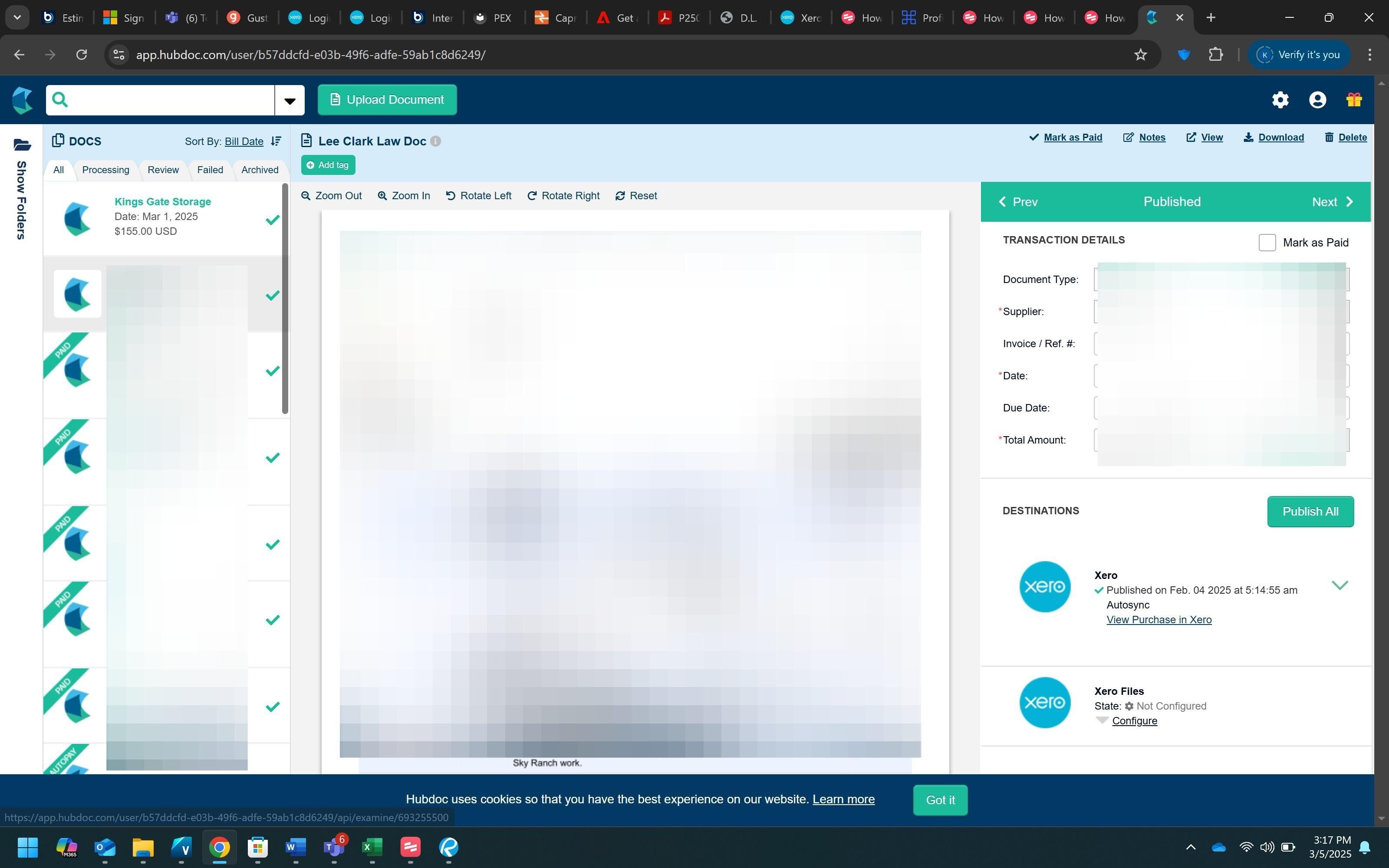 Publishing sends the document data to Xero where it can be matched with corresponding transactions.