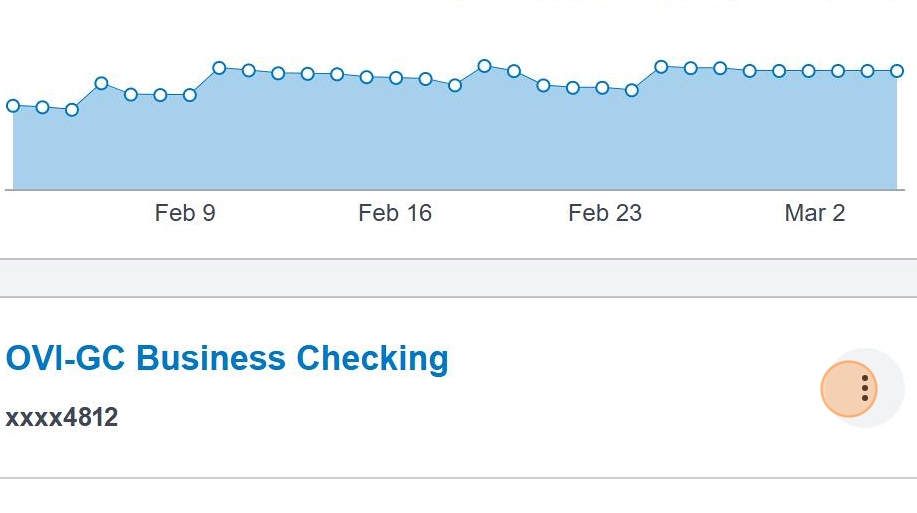 Login to Xero, locate the OVI-GC Business checking account on the dashboard and click on the 3 stacked dots to the right.