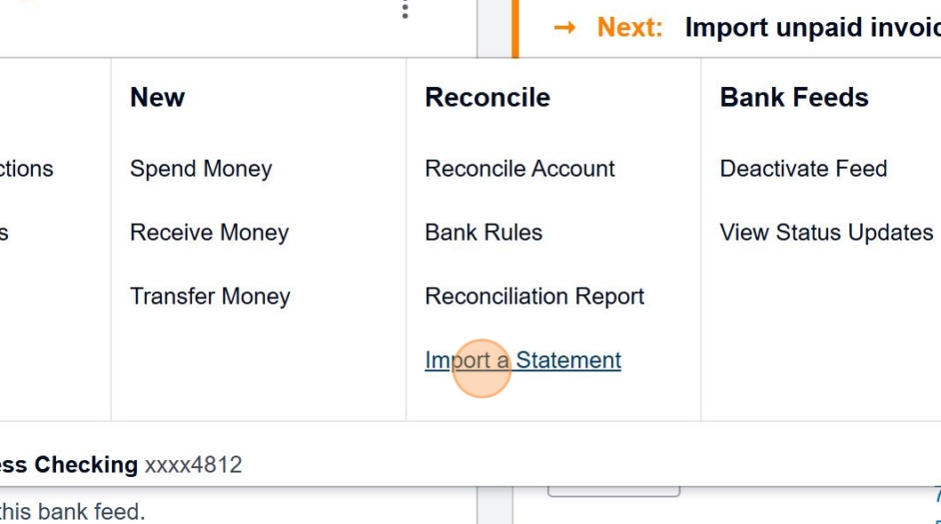 Click "Import a Statement" under "Reconcile" in the dropdown menu.
