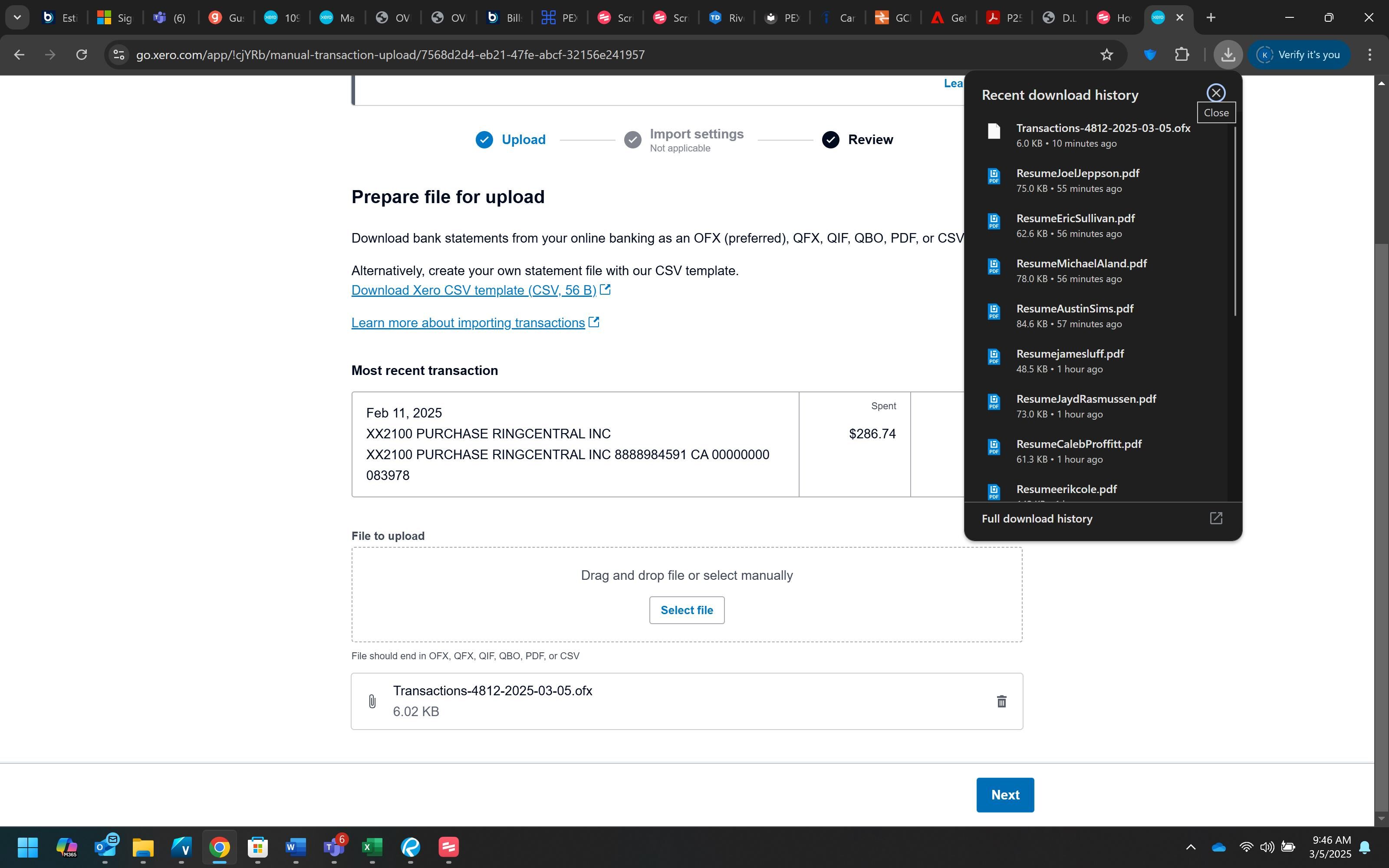 Upload the previously downloaded .ofx file using the file uploader interface.