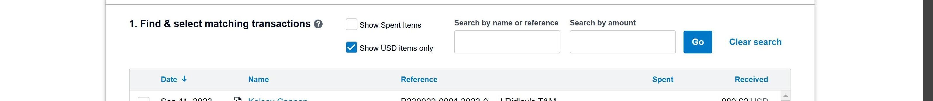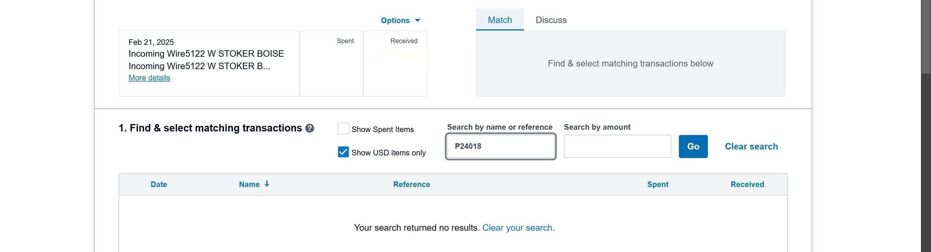 Use the search field to find the invoice(s) that correspond to this payment. For optimal matching, enter the specific invoice number.