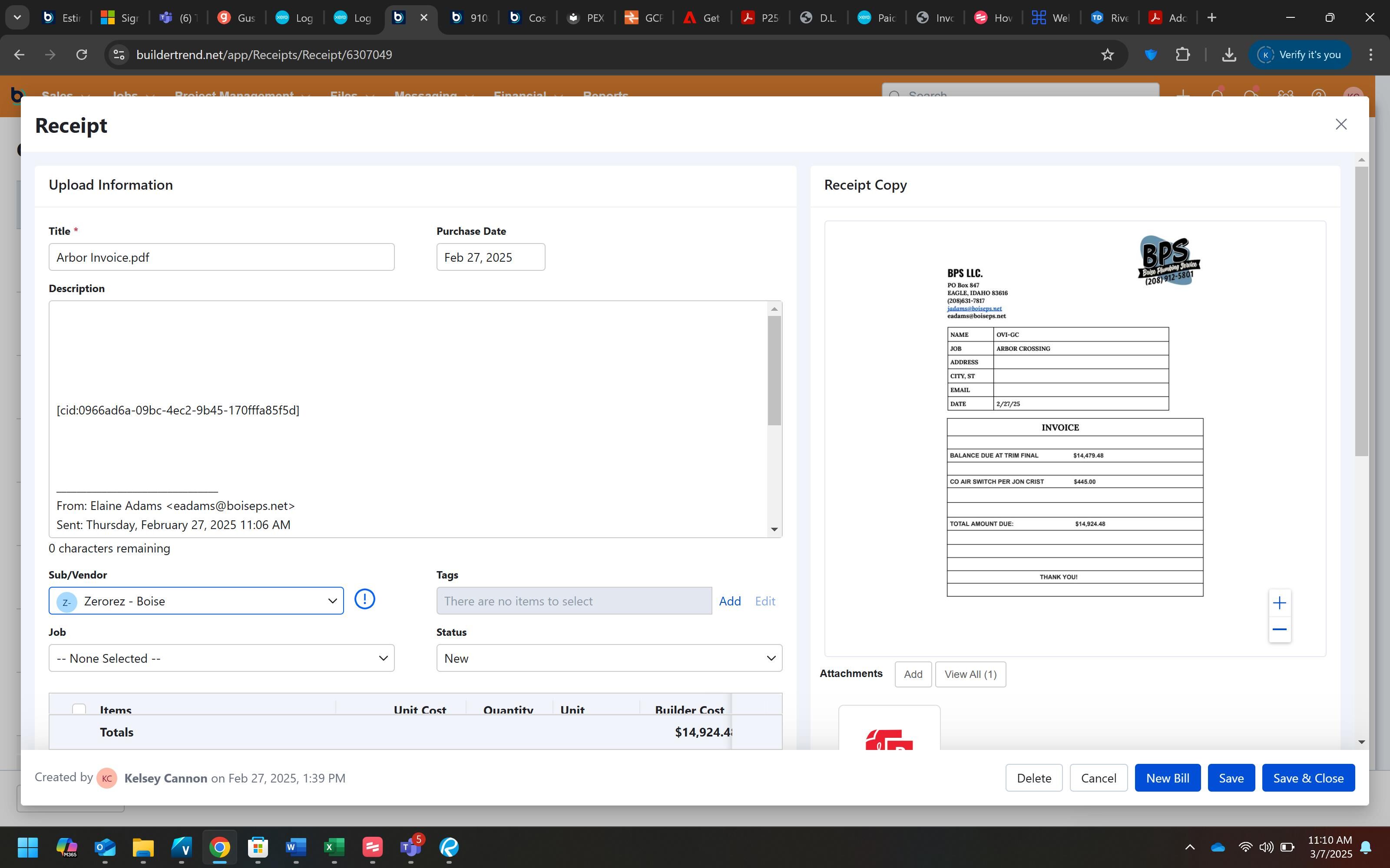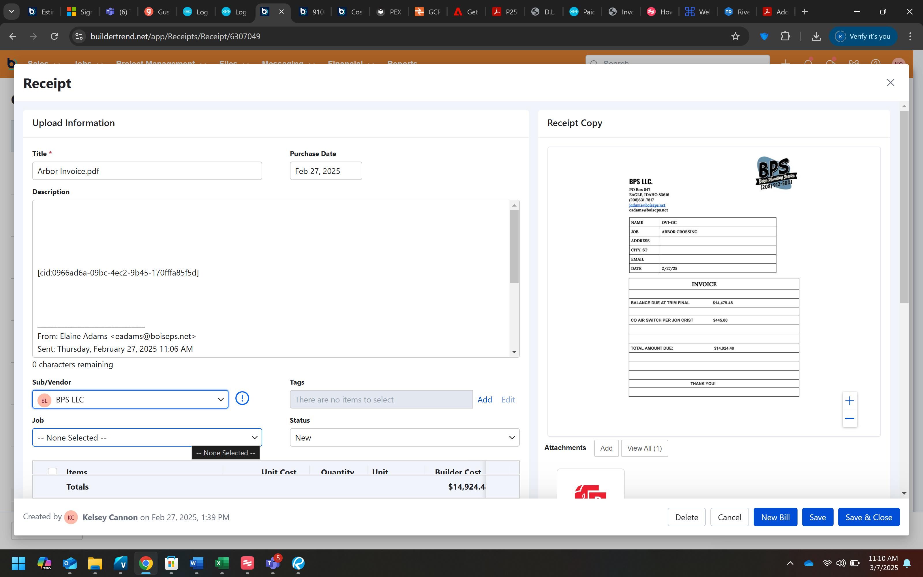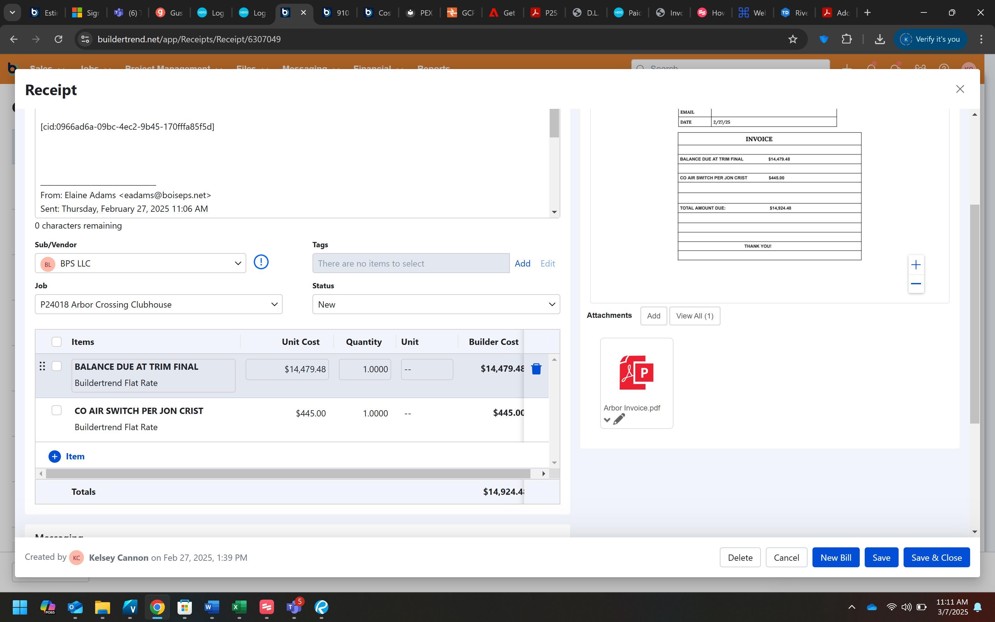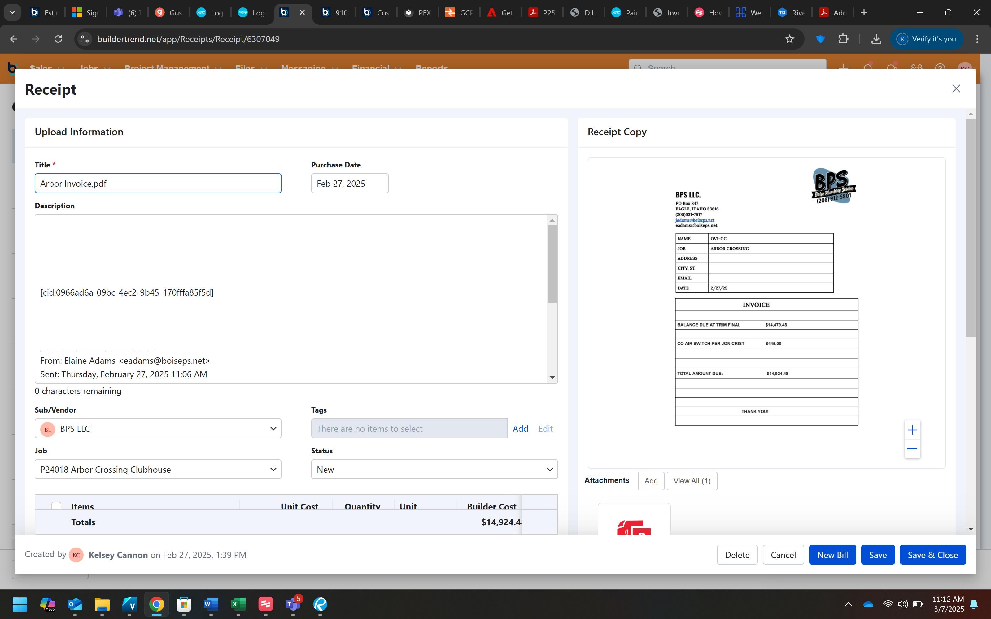 Always double-check the amounts and descriptions that Buildertrend automatically matches to ensure they align with the actual invoice.