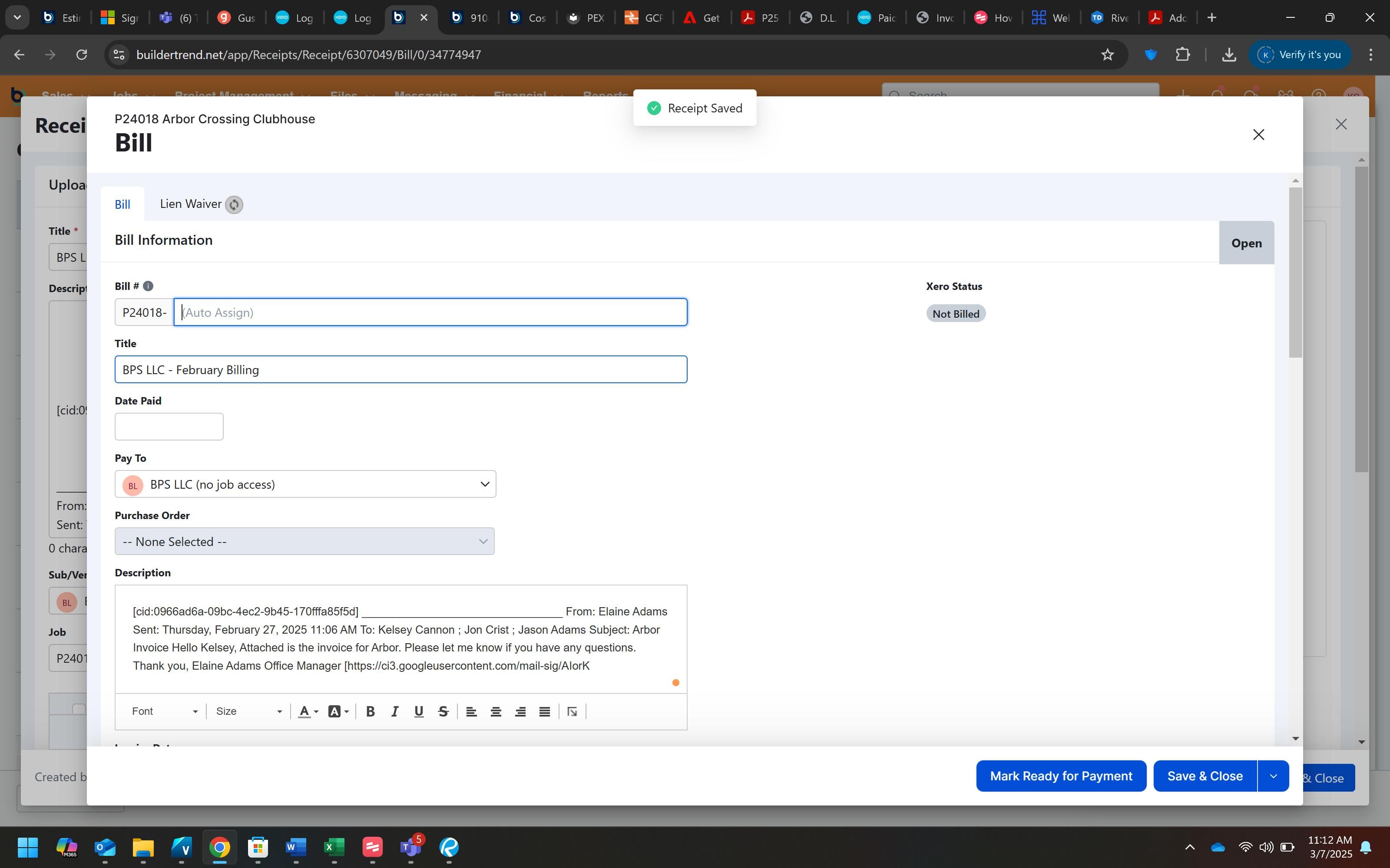 Copy and paste the title to use as the bill number for consistency and tracking.