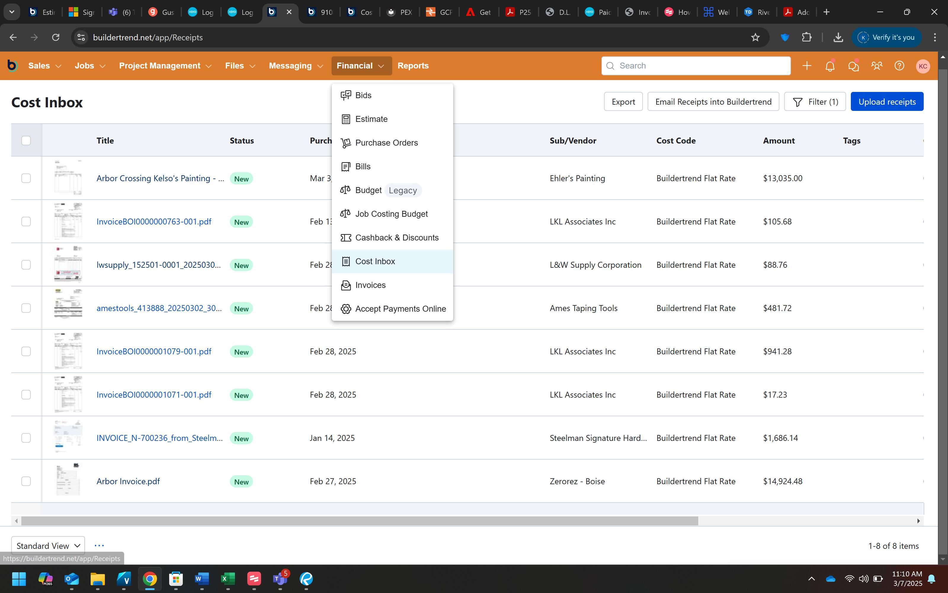 Start by accessing the Financial Menu in Buildertrend to find the Cost Inbox feature.